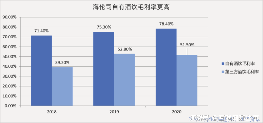除了控制租赁成本,海伦司“自有产品为主,外部产品为辅”的经营模式也保证了它的高毛利率,海伦司的自有产品多来自国内酒厂代工,成本较为低廉。