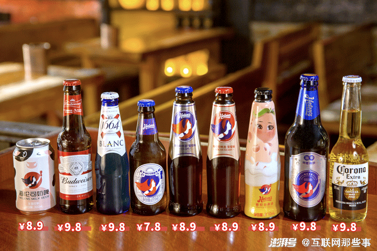 针对这群目标用户,海伦司的定价非常便宜:一瓶啤酒的价格通常不会超过 10 元,一升装的扎啤只卖 28 元,人均消费不到 50 元,而在miu这样的酒吧,价格会出现五倍的差距,海伦司也因此荣获“酒馆界的蜜雪冰城”的称号。