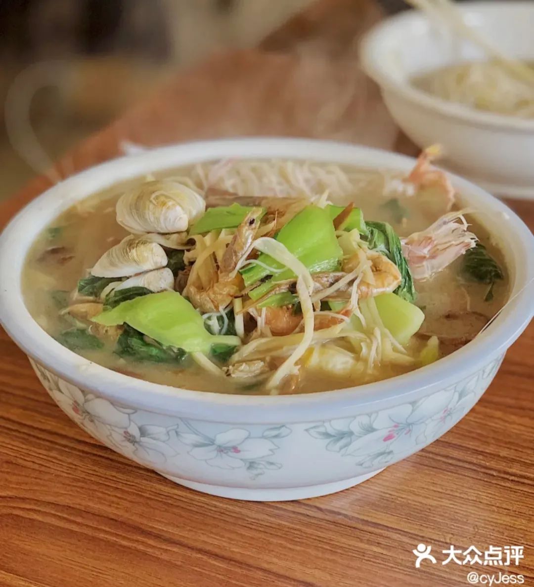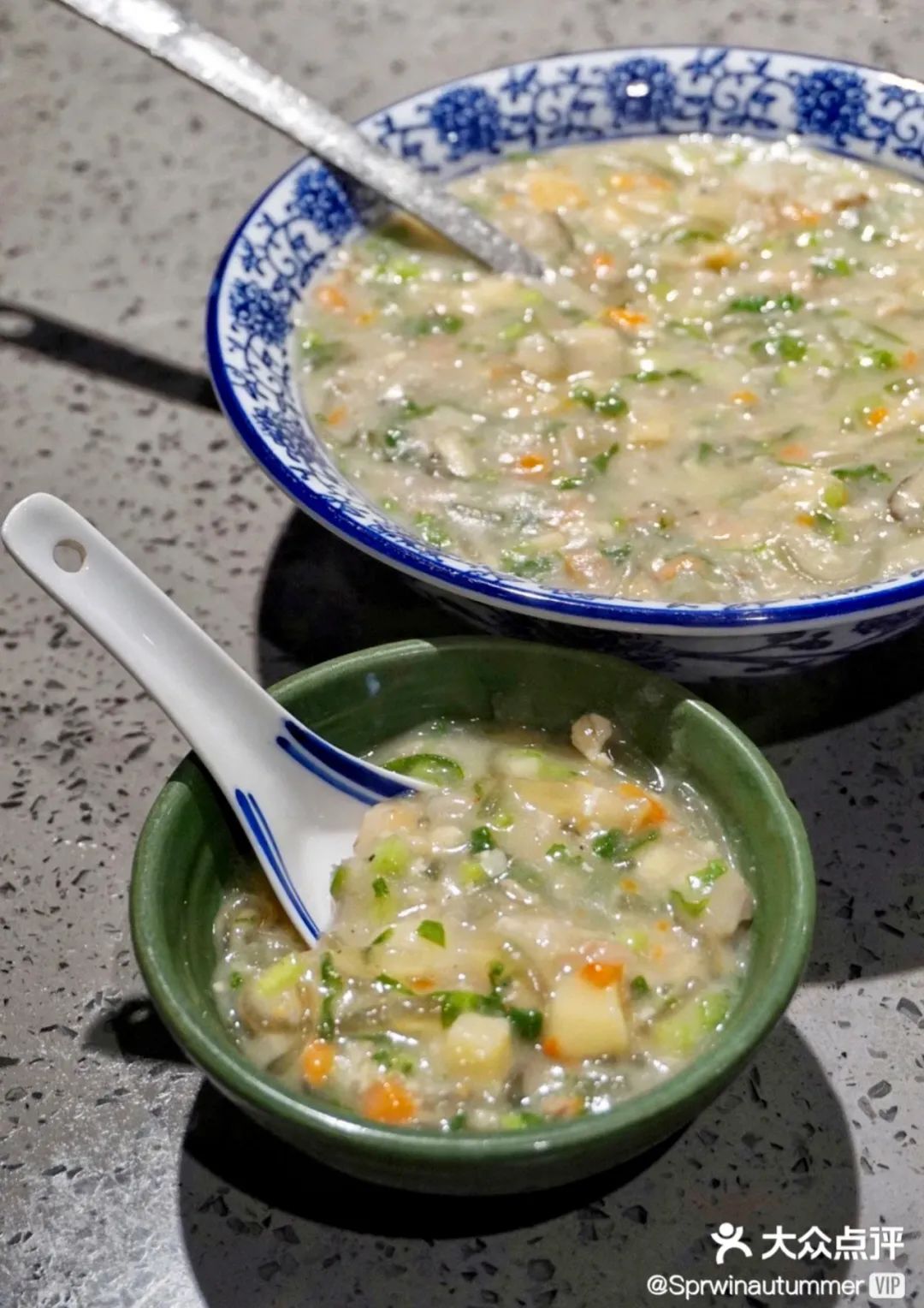 出现在节日上的美味,也是临海人平时最爱的小吃。肉丝、冬笋丝、香菇、木耳、鲜蛏、豆干、菠菜等,与米粉一起煮成糊状。