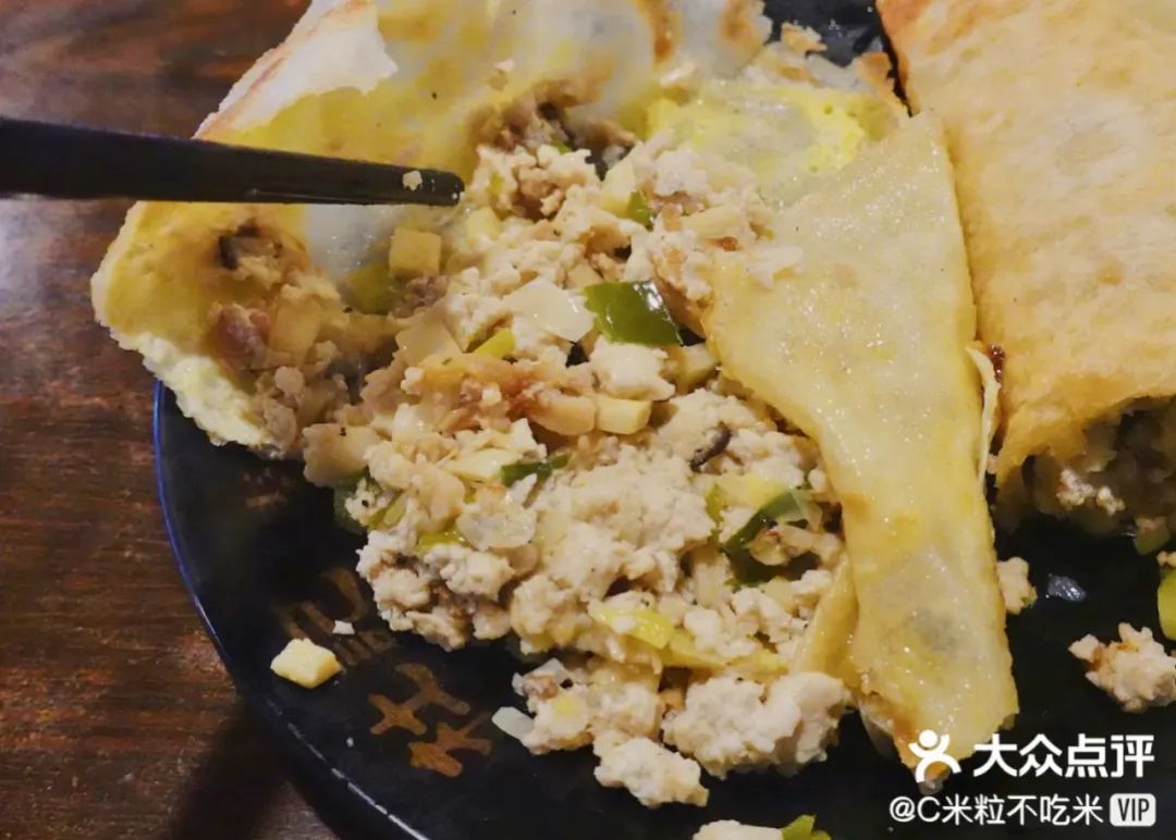 在所有美食小城都有的早餐美味,麦油脂就是“大饼卷万物”的代表,稍有不同的是里面夹杂了许多豆腐、鸡蛋丁等,吃起来会是更加清淡的口感。