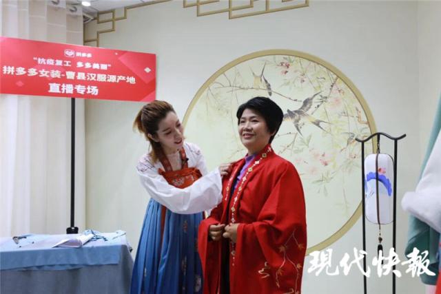 △梁县长身着红色汉服,向网友推荐曹县原创品牌 曹县宣传部供图