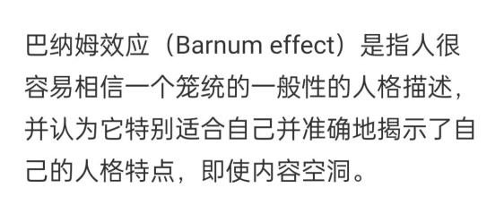 而每次这种测试火了之后,都会伴随着一个叫做巴纳姆效应的科普。。。