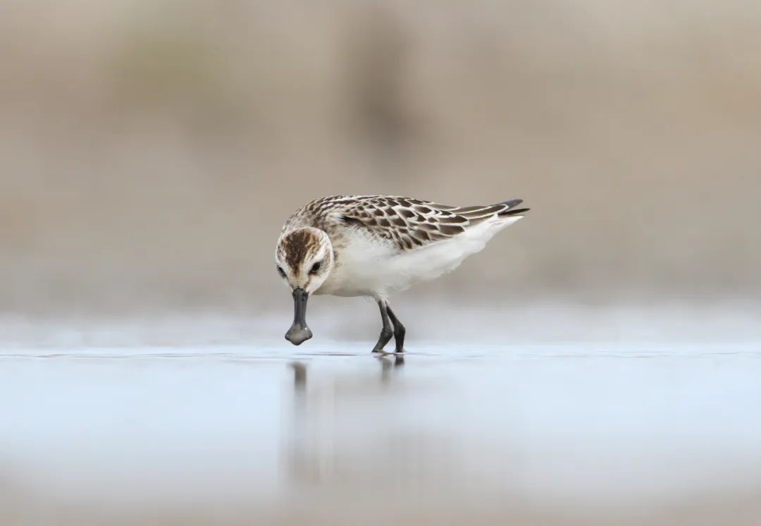 ▲ 勺嘴鹬,2014年9月摄于上海崇明东滩 (全球不到700只)保护区主要由团结沙外滩、东旺沙外滩、北八滧外滩、潮间带滩涂湿地和河口水域组成,1998年经上海市人民政府批准建立,划分为核心区、缓冲区和实验区,其中核心区165.92平方公里、缓冲区10.7平方公里、试验区64.93平方公里。