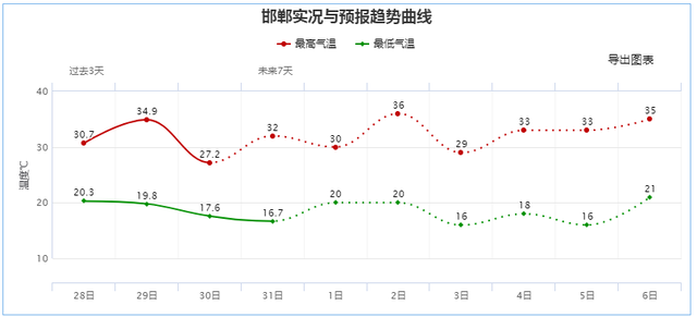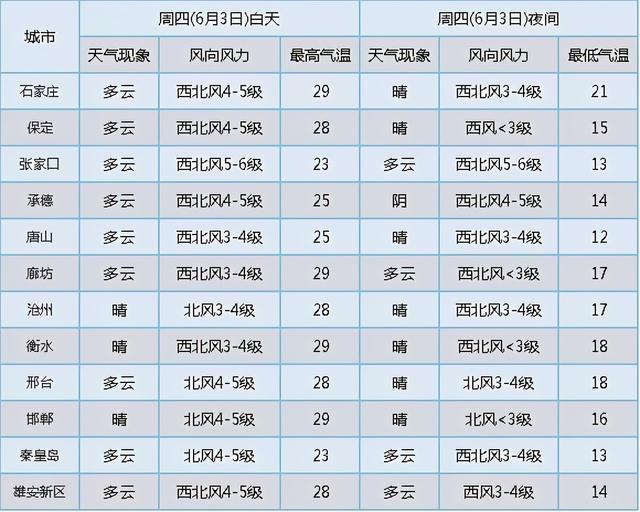 明天(6月1日)气温小有回升,整体来看大部在30℃附近。到了后天(6月2日)大部气温会再上一个台阶,领跑的邯郸能到36℃,又一个高温天;其它大部在27-33℃。