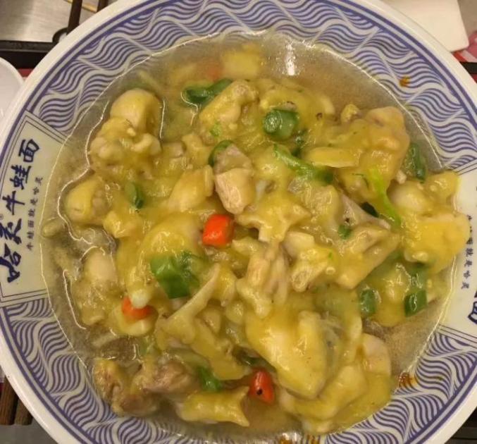 富贵面馆有四大要素:一汤一面、浇头特制、面条筋道、温度适宜。这家店的头牌其实是牛蛙面,号称“上海第一家牛蛙面”,灵额伐得了!牛蛙分量不少,整个碗铺满面条。吃口很新鲜,肉质Q弹,口感嫩滑,汤汁入味。因为跟杭椒一起烧,所以不是特别辣。红绿辣椒搭配,色彩漂亮,所有的搭配算是完美!