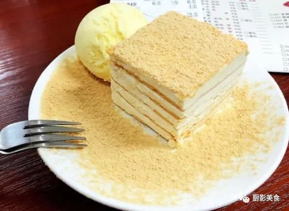 原味木糠冻饼有芒果味、朱古力味和原味木糠味三个口味可以选,可以双拼或者三拼。冻饼有一点千层蛋糕的感觉,上面是细细的木糠粉,下面是豆乳味的冰激凌冻糕,冰冰甜甜口感特别好,也可以再搭配一个雪糕球,可能味道更赞!