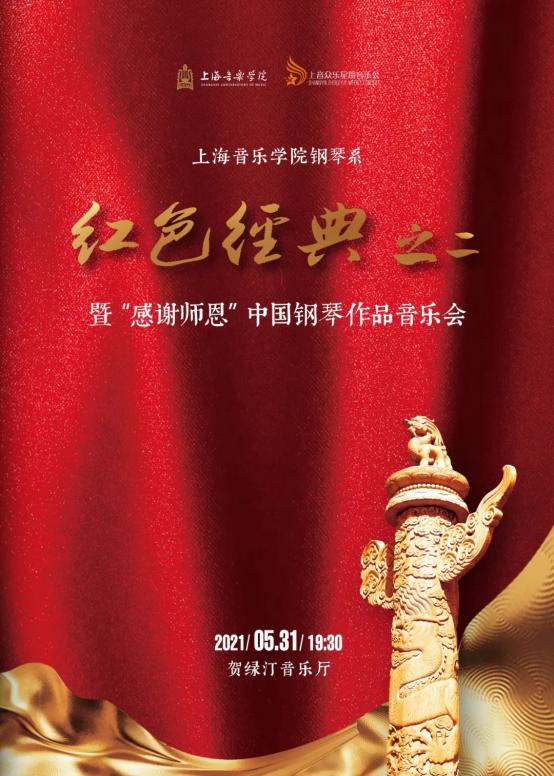 5月31日,上海音乐学院钢琴系“红色经典之二:中国钢琴作品音乐会”在贺绿汀音乐厅举行,钢琴系师生特别选择中国钢琴百年来的经典作品,庆祝中国共产党建党百年。“