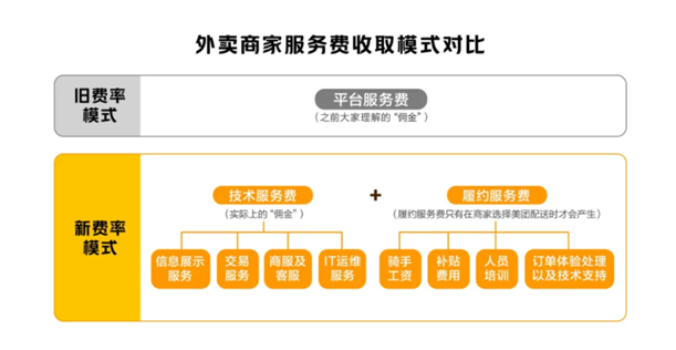 公开透明是唯一的释疑方法。于是,美团决定主动改变以往外卖行业大呼隆的情况,大力推进“费率透明化变革”,将原有的“平台服务费”拆分为“技术服务费+履约服务费”。履约服务费只在商家选择平台配送时才会产生,且随时段、距离和单价三个因素变化。履约服务费的透明化正是关键所在。