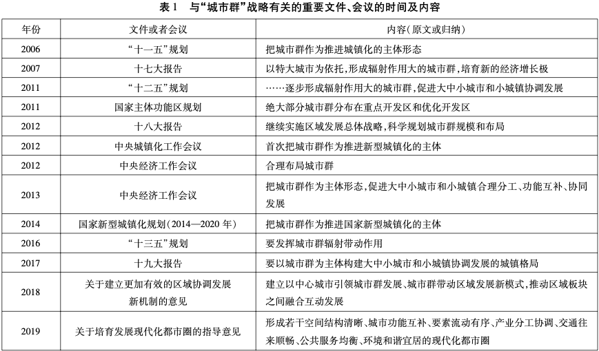 表格摘自论文《中国城市群战略变迁逻辑与“十四五”深化方向》