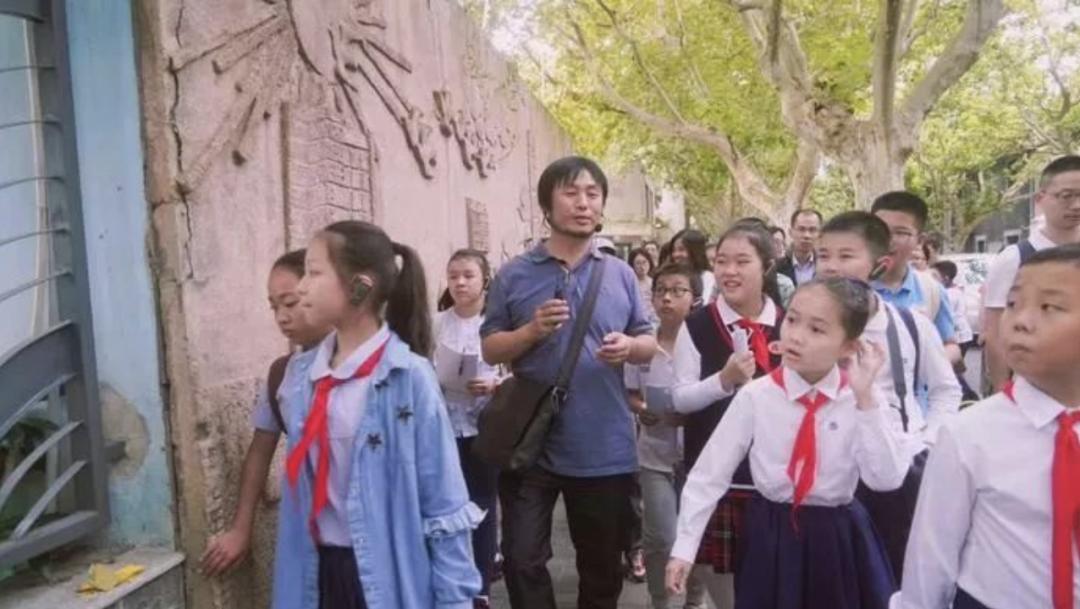 城市可阅读,使周培元名声在外,经常带队徒步,而他再一次阅读苏州河畔,是带着一群小朋友,在新亮相的苏州河边行走。