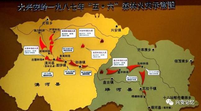 1987年5月6日,大兴安岭地区的西林吉、图强、阿木尔和塔河4个林业局所属的几处林场相继起火,引发新中国成立以来最严重的一次森林火灾。过火面积达到124.3万公顷,使104万公顷的森林资源遭受了严重破坏。造成直接经济损失达5亿多元,间接损失达69.13亿元。大兴安岭人民群众与广大解放军官兵为了国家和人民利益,发扬党和人民军队吃苦耐劳、连续作战、不怕牺牲的好传统、好作风,同甘苦,共患难,英勇顽强,连续奋战28天,彻底扑灭了大火,以实际行动谱写了新时期军民团结、勇敢战斗的壮丽凯歌。