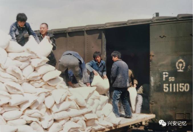 1987年5月火灾后政府及时为灾区人民调运第一批面粉