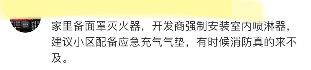 消防说,烟是往上面去的,你跑不过烟的速度,很有可能会吸入大量的烟气,有些人可能觉得往上跑到露台空气比较新鲜,到顶楼以后可以呼吸到新鲜空气,烟一旦上去之后,顶楼烟气吸入是很快的,所以有机会就一定要往下跑。