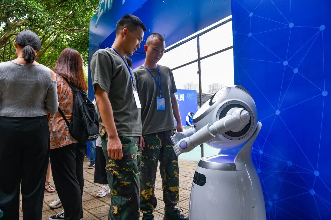 巡游在校园里的优必选机器人给你支个反诈妙招;
