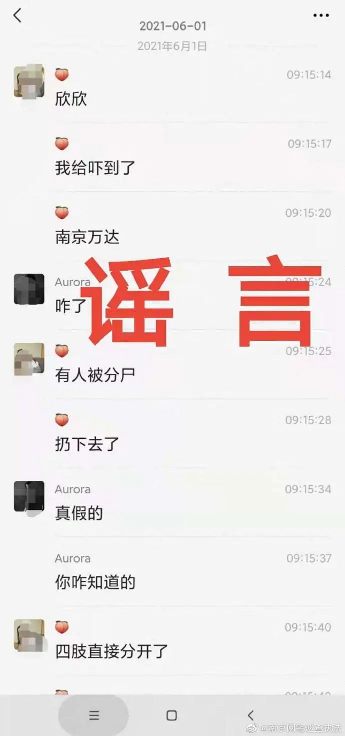 该谣言有多个地市版本,目前南京网警也已经辟谣。
