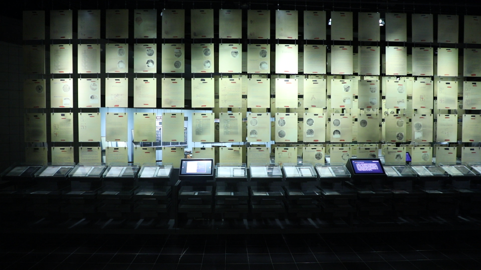 侵华日军第七三一部队罪证陈列馆人体实验展区,一张张英文人体实验报告书复印件,连成一面墙。新华社记者 何山 摄
