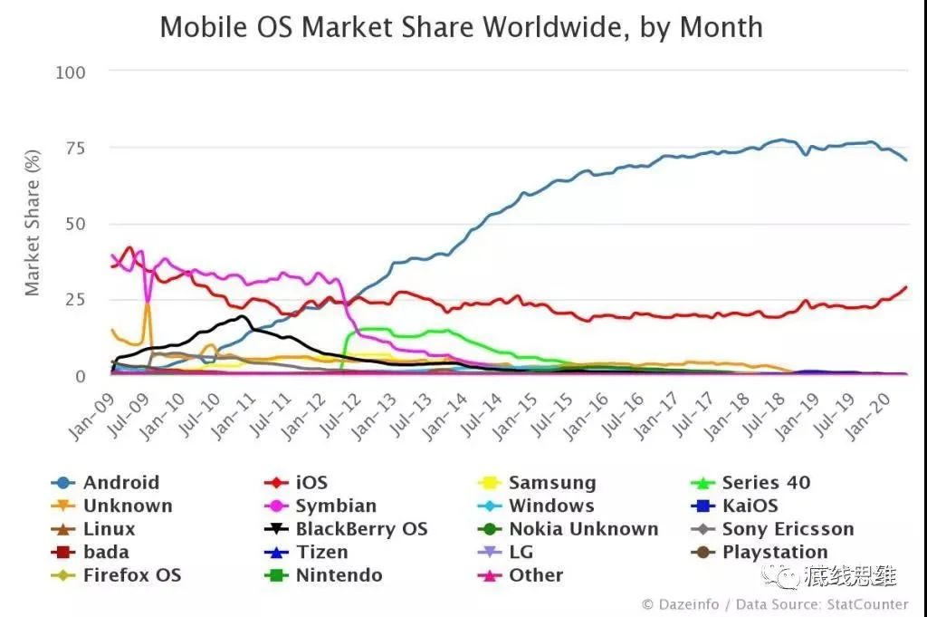 过去三十年,只有微软、苹果、谷歌三家公司的操作系统成功形成了应用生态。
