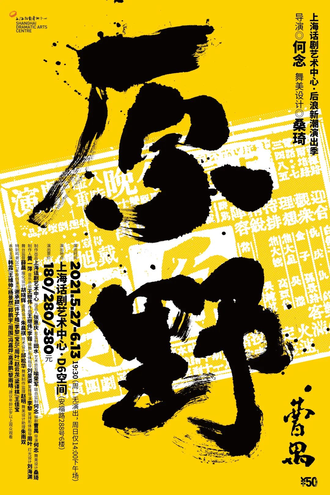制作出品:上海话剧艺术中心 | 出品人:张惠庆 | 总监制:田水 | 艺术总监:喻荣军 | 联合监制:何念 | 编剧:曹禺 | 导演:何念 | 舞美设计:桑琦 | 制作人:黄一萍 | 音乐总监:王继伟 | 作曲:王继伟/李锴 | 编舞/形体指导:刘旻姿 | 复排导演:李黎 | 复排形体指导:周叶 | 灯光设计:刘海渊 | 舞台监督:薛晨 | 服化设计:胡晓辉 | 道具设计:朱晨祺 | 技术设计:邱松华 | 舞美制作监理:赵明 | 舞美设计助理:朱雨双