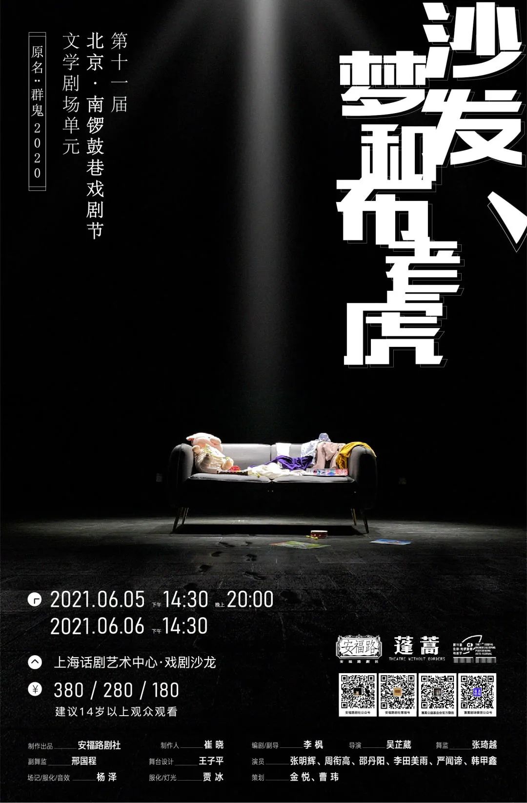 制作出品:安福路剧社 | 制作人:崔晓 | 编剧/副导:李枫 | 导演:吴芷葳 | 舞监:张琦越 | 副舞监:邢国程 | 舞台设计:王子平 | 场记/服化/音效:杨泽 | 服化/灯光:贾冰 | 策划:金悦·曹玮