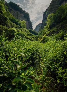 在回答这两个问题之前,我们先来了解一下武夷岩茶与岩韵的概念。武夷岩茶,始于明末清初,以其独特的岩韵品质享誉中外,在我国乃至世界茶叶发展史上占据重要的地位。按照国家标准GB/T 18745-2006,武夷岩茶(Wuyi rock tea)是指独特的武夷山自然生态环境条件下选用适宜的茶树品种进行无性繁育和栽培,并用独特的传统加工工艺制作而成,具有岩韵(岩骨花香)品质特征的乌龙茶。岩韵:也指“岩骨花香”,是武夷岩茶独特的自然生态环境,适宜的茶树品种、良好的栽培技术和传统而科学的制作工艺等综合形成的香气和滋味。岩韵是一种有物质基础的品质风味,具体可表现为香气芬芳馥郁、幽雅、持久、有力度;滋味啜之有骨、厚而醇、润滑甘爽,饮后有齿颊留香的感觉。“岩韵”是武夷岩茶品质特征的专业术语,一般运用在香气与滋味上。“岩韵”是由山场、工艺及品种三个要素交互作用形成,是武夷岩茶品质的一种综合呈现,一般有强弱之分。一、山场与岩茶品质有什么关系?