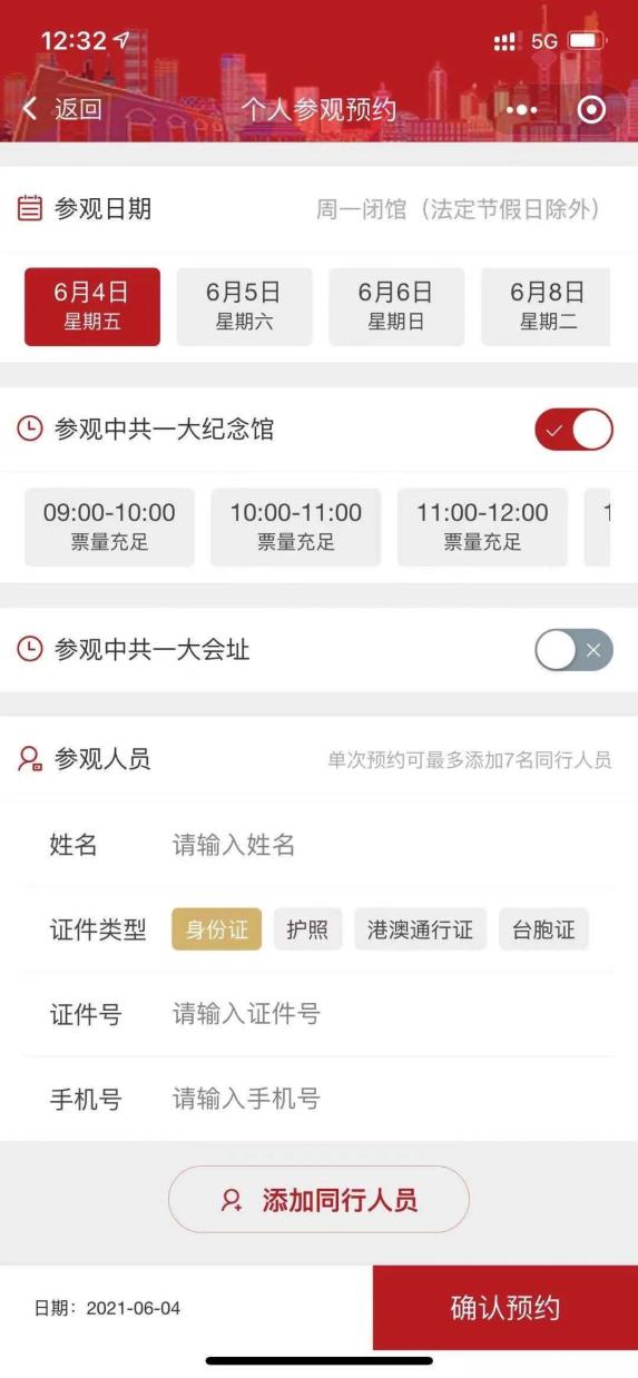 搜索“中共一大纪念馆”微信小程序,打开预约页面。