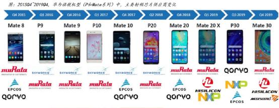 来源见水印2018年之前,思佳讯等美国企业,一直是华为手机射频芯片的主供应商。可是特朗普制裁令下,到Mate 30问世时,华为为了规避风险,排除了美国企业,但仍然要依赖日本村田。