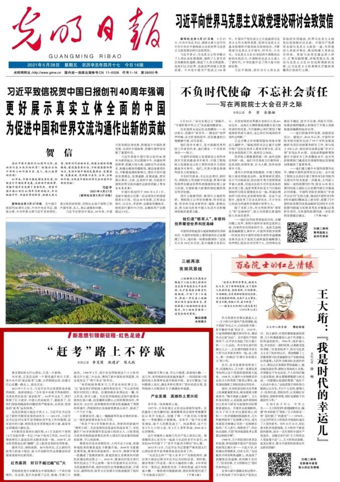 光明日报5月28日头版刊发《“赶考”路上不停歇》。2012年12月,习总书记到阜平考察革命老区扶贫工作。8年多的时光过去,崭新的住房、干净的街道、成片的致富大棚……阜平县骆驼湾旧貌换新颜,曾经的特困村成了“乡村旅游示范村”,乡亲们过上了好日子。1