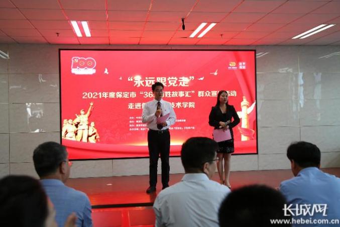长城新媒体5月25日刊发《依托群众宣讲 保定市推动党史学习教育向纵深开展》。5月24日,2021年度保定市“365百姓故事汇”群众宣讲活动走进保定职业技术学院,讲好保定的红色历史,传承爱国情怀。依托这一群众宣讲活动,保定市推动党史学习教育向纵深开展。1