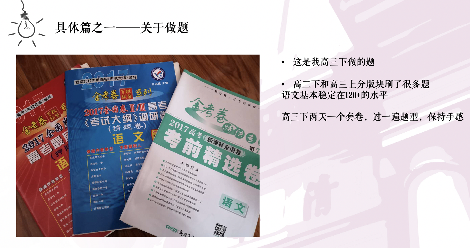 凯玟做的PPT凯玟的男朋友也在清华就读,疫情期间曾回高中母校做过三次宣讲,他被学生家长请去在班会课上讲复习规划、备考事项和学习方法,一节课的报酬400元到600元不等。一套PPT他来回用,这套PPT的最后几页是清华风光展示,包括风景、食堂、社团活动、著名校友等介绍,是他从清华招生宣传资料上复制过来的。当凯玟问男朋友有没有带清华logo的PPT模板时,他迅速将自己做过的宣讲PPT发了过去,其中很多内容被凯玟直接挪到自己的PPT上。