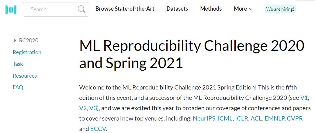 PapersWithCode 复现报告地址:https://paperswithcode.com/conference/rc-2020ReScience 复现报告地址:http://rescience.github.io/read/#volume-7-2021