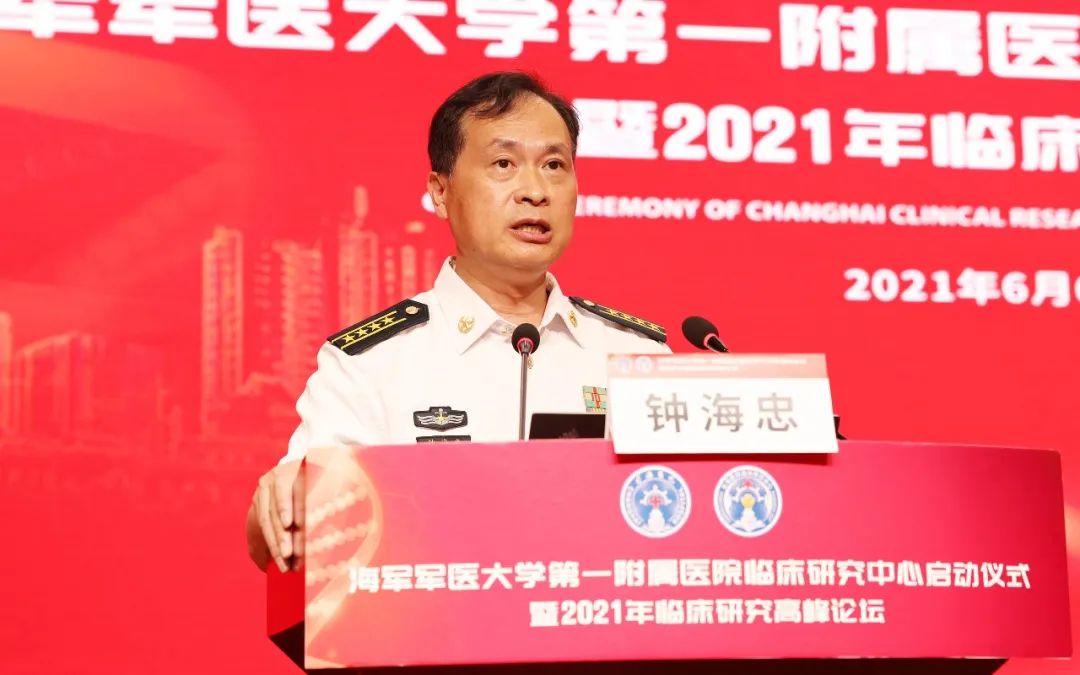 6月6日上午,海军军医大学第一附属医院(上海长海医院)举行临床研究中心启动仪式暨2021年临床研究高峰论坛。海军军医大学刘军校长、国家卫健委科教司规划评估处刘桂生处长、上海市申康中心王兴鹏主任、上海市科委朱启高副主任、上海市卫健委胡鸿毅副主任莅临本次会议。上海知名医院、高校科研部门负责人,医院常委、机关各处相关科办负责人、科室主任、临床研究专家和广大临床研究合作伙伴齐聚长海会堂,开幕式由医院徐财明政委主持。