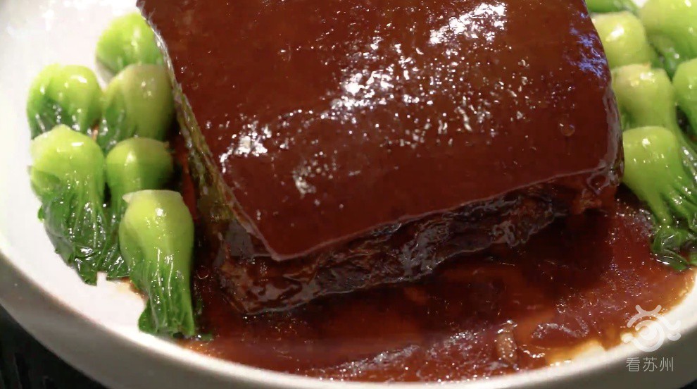 酱方是靠酱油来上色的,看上去颜色要暗淡许多,并且四个角会微微下塌。 看苏州 图