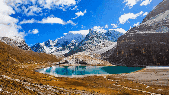 远处高耸的雪山