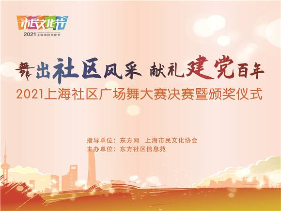 6月7日下午,以“舞出社区风采 献礼建党百年”为主题的2021上海社区广场舞总决赛在上海市群众艺术馆星舞台举办。来自全市各区的10支代表队经过10场初赛、1场复赛的角逐,从160余支队伍中脱颖而出,登上了总决赛的舞台。本场大赛由东方网和上海市民文化协会为指导单位,东方社区信息苑主办。