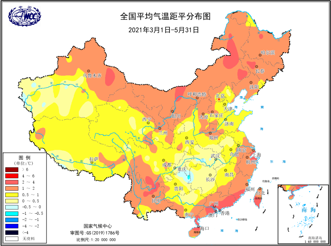2021年春季全国平均气温距平分布图(℃)。图/国家气候中心