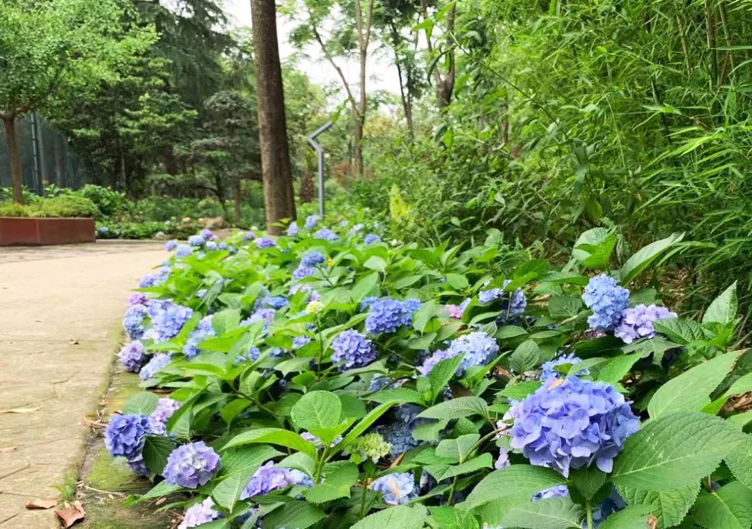 入口花坛的桂花入秋后香味扑鼻,绣球“无尽夏”、“塞布丽娜”,梦幻蓝紫色烘托出一片无尽的视觉盛宴,让人们在忙碌的生活中,能够看见一丛丛美丽的花,细细品味每一段时光,慢慢沉淀了浮躁的心情。