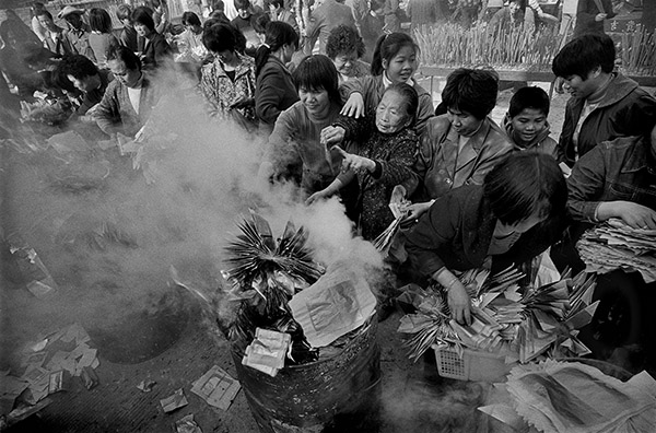 同一家族供神的供桌总是放在一起,上面摆满了敬神的物件