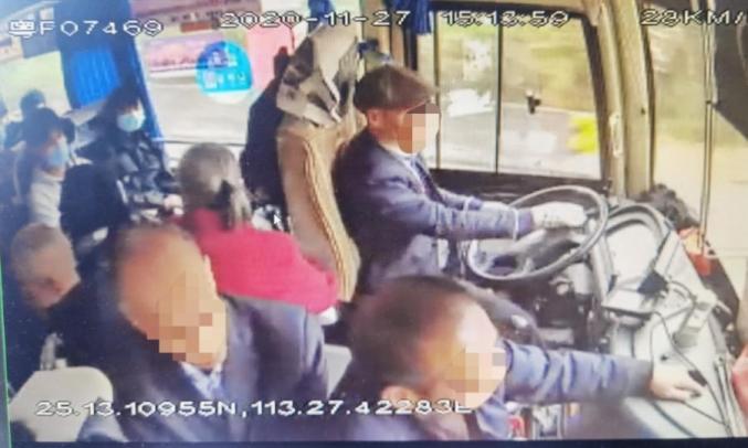 当时驾驶员没有带行驶证,随后,执勤民警上车对这辆客车的