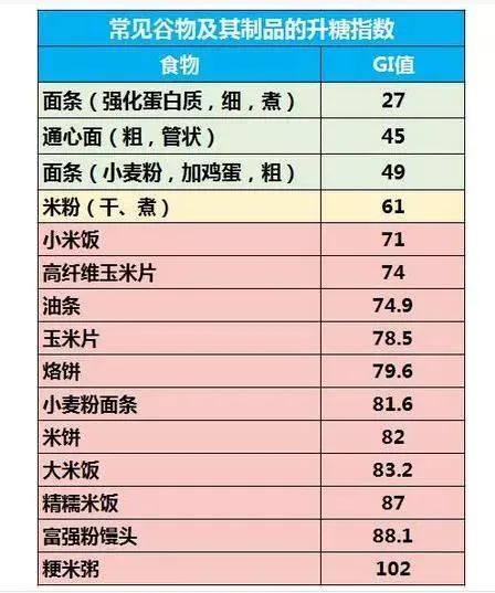 不过米、面的加工精细程度、烹调方法、软烂程度等等也会影响升糖指数,比如粥跟干饭,粥的升糖能力就要远远超过干饭。而煮烂的面条与干拌面,煮面条的升糖能力就要超过干拌面。糖友如何吃米和面呢?一定记得量要控制。不论是吃面、吃米,每顿最好不要超过2两,但也不能不吃主食,最好根据自己的体力活动来合理安排一日三餐,吃主食时,搭配其他配菜。有利于营养均衡,中和整体的升糖指数。