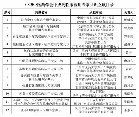中华中医药学会《强力定眩片临床应用专家共识》等12项中成药临床应用专家共识立项公告