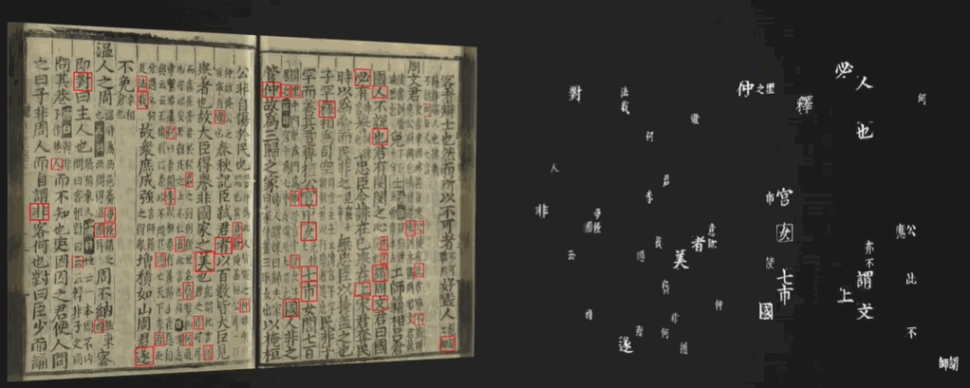 由于一本书里的很多字是重复的,比如“之乎者也”,经过“聚类”,古籍专家一次就能标注完一本书里的某个字类。原本逐个录入可能要标注十万次,现在只需要标注几千次,大大减少劳动量。