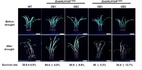 /在玉米耐旱机制方面取得新进展国科大博士生导师、中科院遗传发育所谢旗研究组与陈化榜研究组合作,通过对玉米重组自交系群体苗期耐旱性的详细分析,对筛选到的极端表型株系进行比较转录组分析,并阐明了一个bHLH类型转录因子参与玉米干旱响应过程的分子机理。该研究选取两个极端耐旱的株系RIL70、RIL73及两个极端旱敏感的株系RIL44、RIL93进行RNA-seq研究,发现基因表达的变化不仅存在于耐旱和旱敏感株系间,也存在于耐旱株系RIL70和RIL73间。研究鉴定到的干旱相关的遗传位点将有助于耐旱作物育种的研究工作。