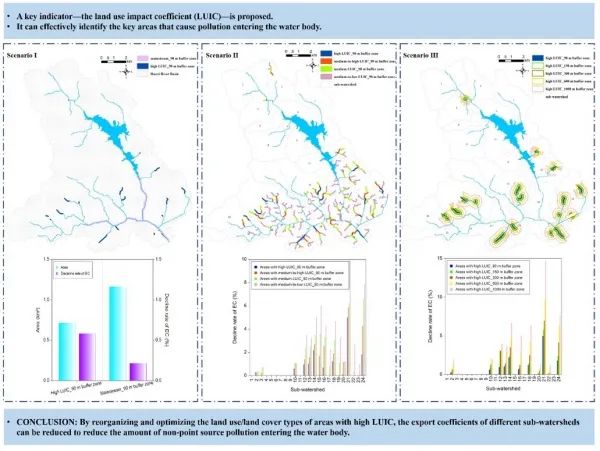 /在衡量土地利用对流域非点源污染迁移影响评价模型开发方面取得进展近日,国科大博士生导师唐丽娜研究员团队提出了一种土地利用影响系数模型,评估土地利用对非点源污染的影响程度,即土地利用影响系数(LUIC)。该模型适用于缺乏水文监测数据的小流域,优越性在于简化了复杂的生态过程,分析土地利用对非点源污染的影响程度,快速识别对水体造成污染的关键区域,从而有助于以更经济、更有针对性的控制手段(土地管理、城市空间规划等),有效地降低非点源污染对生态系统的风险。相关研究成果以The response of the migration of non-point source pollution to land use change in a typical small watershed in a semi-urbanized area为题,发表于国际期刊Science of The Total Environment。钱瑶(助理研究员)为第一作者,唐立娜(研究员)为通讯作者。