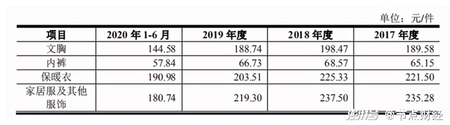 随着内衣的价格竞争愈发激烈,2017年至2020年上半年,爱慕也尝试着通过降价等手段回笼资金,可以看出其代表作品文胸的平均价格已经从接近200元降至150元以下。