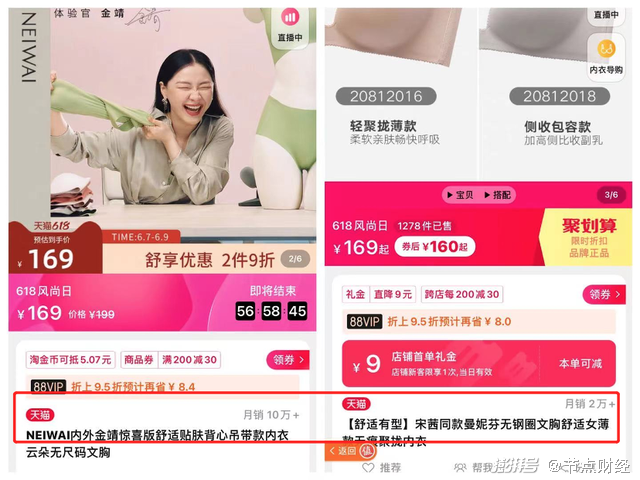 一款内外的无尺码文胸,只需要做10种不同的颜色,6.18照样也能打败中国内衣之父安莉芳,月销10万+。而就代言人来说,这款文胸的代言人金靖的粉丝基础,与安莉芳的代言人宋茜也有差距。