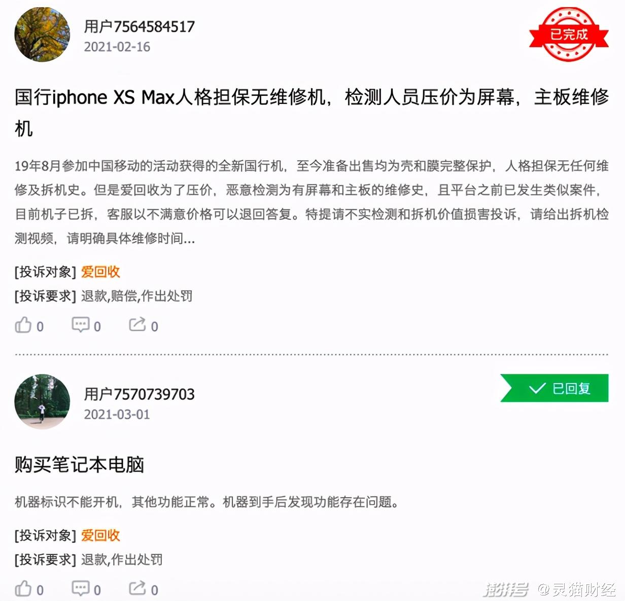 不仅如此,对C2B模式而言,品控和服务也是重中之重,但这又与爱回收的回收模式天然相冲,因为爱回收的C2B模式就是通过信息差压价赚取利润。