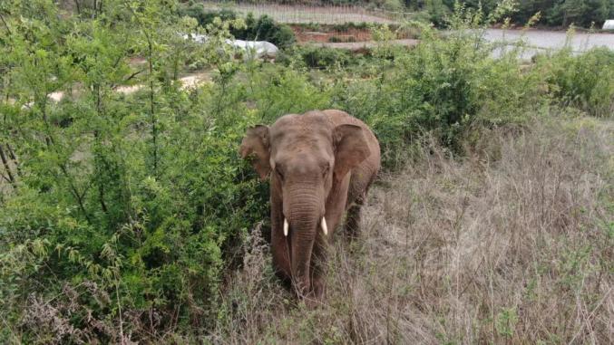 离群后的公象目前,正采取人为辅助的方式,引导象群向原来的栖息地进发。