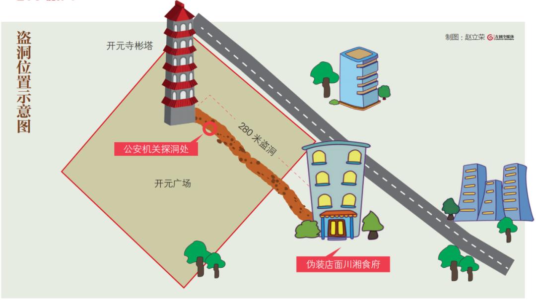 盗掘工作进行得很艰难,挖地道就用了6个多月,有一次地洞挖偏了,都能听到地洞上方群众跳广场舞的声音,他们很是被吓了一跳。