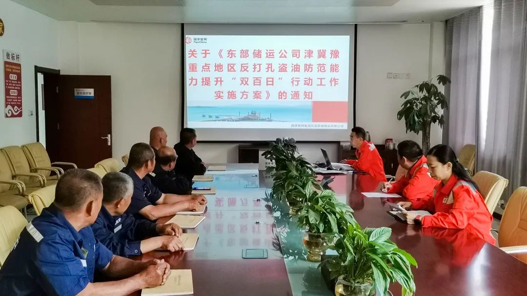 5月31日前,津冀鲁豫境内的输油处、油库召开了专题会议对“双百日”行动进行了安排部署,进一步织密织严打孔盗油防控网。6月9日,国家管网集团在济南召开庆祝建党100周年重点地区警企油气管道安保工作推进会。东部储运公司汇报了反打孔盗油防范能力提升“双百日”行动进展及庆祝建党100周年期间油气管道安保工作安排。