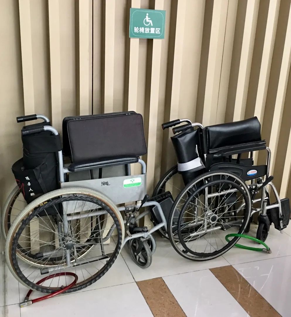 为方便老年患者就诊,中心在出入口设置专用车位、无障碍通道和卫生间等,在台阶、坡道、转弯处张贴安全警示标志以及每个楼层都有扶手设置等措施。